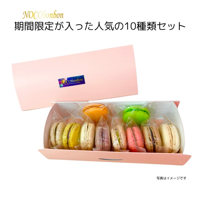 NOCObonbon【ノコボンボン】の店舗で人気の期間限定フレーバーも入った10個セットです。 一つ一つ手作りされたマカロンは外側はサクッとした食感で、生チョコのようなガナッシュと呼ばれる口溶けのよい濃厚なチョコクリームをたっぷりと挟んでいるので食べ応えがあります。 期間限定商品を含む10種類のフレーバーが詰まったこのセットは、贈り物やご褒美に最適。 バラエティに富んだ味わいを楽しめるため、大切な方へのプレゼントや記念日のお祝い、手土産にもぴったりです。 洗練された見た目も魅力的なので、ママ会や友人とのティータイムにもおすすめです。 ぜひ、特別な日のお供に、自分へのご褒美に当店のマカロンをご堪能ください。 業務用冷凍庫で鮮度を落とさず急速冷凍させているので専門店の本格的なパリ風マカロンがお楽しみいただけす。 発送日より冷凍庫(-18℃以下)で10日、解凍後は要冷蔵で2日の賞味期限です。 【商品情報】 【品名】 マカロン 【内容量】 10個 ※手作りのため大きさに多少のばらつきがあります。 【原材料】 《バニラ》砂糖(国内製造)、アーモンドプードル、卵白、乳製品、チョコレート、植物油脂/香料(バニラビーンズ) (一部に卵・乳成分・大豆・アーモンドを含む) 《チョコ》砂糖(国内製造)、アーモンドプードル、卵白、乳製品、チョコレート、植物油脂、ココアパウダー (一部に卵・乳成分・大豆・アーモンドを含む) 《いちごみるく》砂糖(国内製造)、アーモンドプードル、卵白、乳製品、チョコレート、植物油脂、いちごピューレ /着色料(赤102)、クエン酸、ペクチン(オレンジ由来) (一部に卵・乳成分・大豆・アーモンド・オレンジを含む) 《オランジェット》砂糖(国内製造)、アーモンドプードル、卵白、乳製品、チョコレート、植物油脂、オレンジピューレ、ココアパウダー /着色料(赤102.黄4)、クエン酸、ペクチン(オレンジ由来) (一部に卵・乳成分・大豆・アーモンド・オレンジを含む) 《シナモンチョコ》砂糖(国内製造)、アーモンドプードル、卵白、乳製品、チョコレート、植物油脂、シナモン (一部に卵・乳成分・大豆・アーモンドを含む) 《クッキー&クリーム》砂糖(国内製造)、アーモンドプードル、卵白、乳製品、チョコレート、植物油脂、ココアクッキー (一部に卵・乳成分・大豆・アーモンド・小麦を含む) 《チョコミント》砂糖(国内製造)、アーモンドプードル、卵白、乳製品、チョコレート、植物油脂/香料(ペパーミントエッセンス)、着色料(青5.黄4) (一部に卵・乳成分・大豆・アーモンドを含む) 《むらさきいも》砂糖(国内製造)、アーモンドプードル、卵白、乳製品、チョコレート、植物油脂、生餡(国内製造)、紫芋、水飴/甘味料(ソルビトール)、香料、着色料(赤102青1黄4) (一部に卵・乳成分・大豆・アーモンドを含む) 《パンプキン》砂糖(国内製造)、アーモンドプードル、卵白、乳製品、チョコレート、植物油脂、生あん、かぼちゃ、麦芽糖、水あめ、寒天、卵白粉、/着色料(赤102青5黄4)、ソルビトール、グリシン、ショ糖エステル、酵素、香料、カロチン色素 (一部に卵・乳成分・大豆・アーモンドを含む) 《ドバイチョコレート風》砂糖(国内製造)、アーモンドプードル、卵白、乳製品、チョコレート、植物油脂、ピスタチオパウダー、カダイフ、ブラックココアパウダー /着色料(黄4青5) (一部に卵・乳成分・小麦・大豆・アーモンドを含む) 【保存方法:】到着後はすぐに冷凍庫に入れて要冷凍(-18度以下で保存、解凍後は要冷蔵) 【召上がり方】冷蔵庫にて解凍後(約4時間)少し常温に戻す、または常温で解凍(約30分)がおすすめの食べ方です。 マカロンは温度によっても食感が変わり、美味しさも変わりますので 噛みごたえがある方がお好きな方は少し冷えた状態で、トロッとクリーミーさを味わいたい方は長めに常温に戻すなど自分のお好みの加減を見つけてみてください 【賞味期限】 発送日より-18度以下で10日、解凍後は要冷蔵で2日(ゴルゴンゾーラのみ解凍後当日中) 【特定原材料】 卵、乳、アーモンド、オレンジ、ゼラチン(クッキー&クリームにのみ小麦) 【注意事項】こちらはマカロン10個入りのセットです。数量を2以上にすると自動的に送料もその数分加算されます。 クレジットカード以外の決済ですと、こちらで送料を変更することが出来かねます。 その為、同一の配送先であっても送料はご購入の数量分での請求。1商品1段ボールでの発送となります。 *例:数量を3でクレジットカード以外でご購入した場合→同じ配送先であっても送料も3つ分、1商品1段ボールに詰めて段ボール3箱でのお届けとなります。 クレジットカード以外のお支払いで2セット(20個)ご希望のお客さまは10個入り2セットの商品をお選び頂くか、それ以上の数をご希望のお客さまはクレジットカード決済をよろしくお願いいたします。 システムの関係上ご不便をおかけいたしますが、ご了承ください。